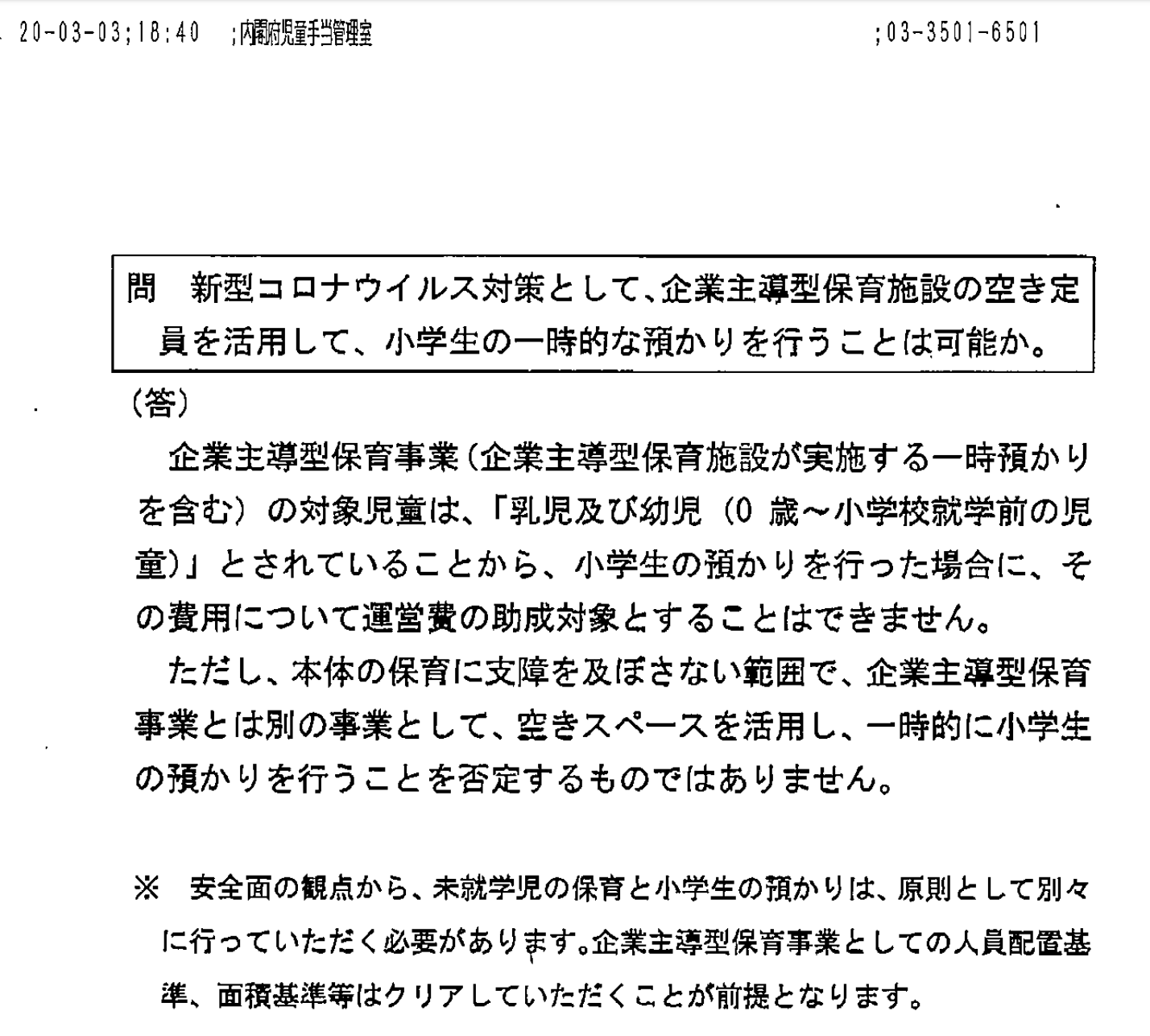 フローレンスでも何かできないか色々考えて、「フローレンスで運営している企業主導型保育所で小学生を預かれないか?」と思って、内閣府から企業主導型のあれこれを委託されている、公益財団法人 児童育成協会に確認してみました。