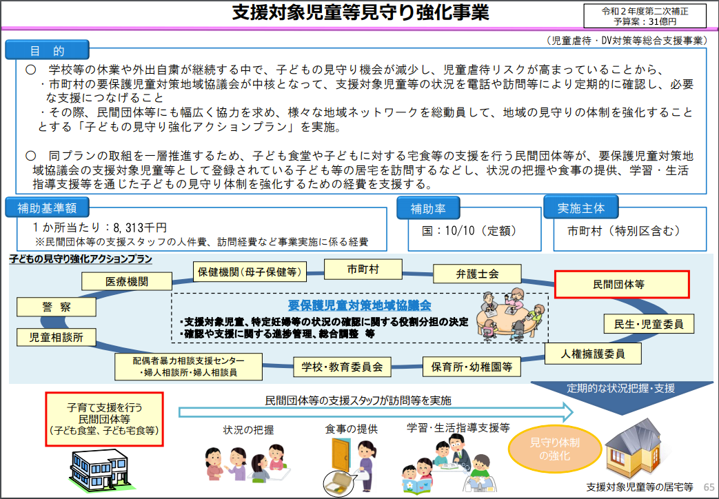各自治体の議員のみなさん、今こそ、こども宅食などの訪問型福祉の実践を開始すべきです!「支援対象児童等見守り強化事業」の内容を確認し、是非導入してください!