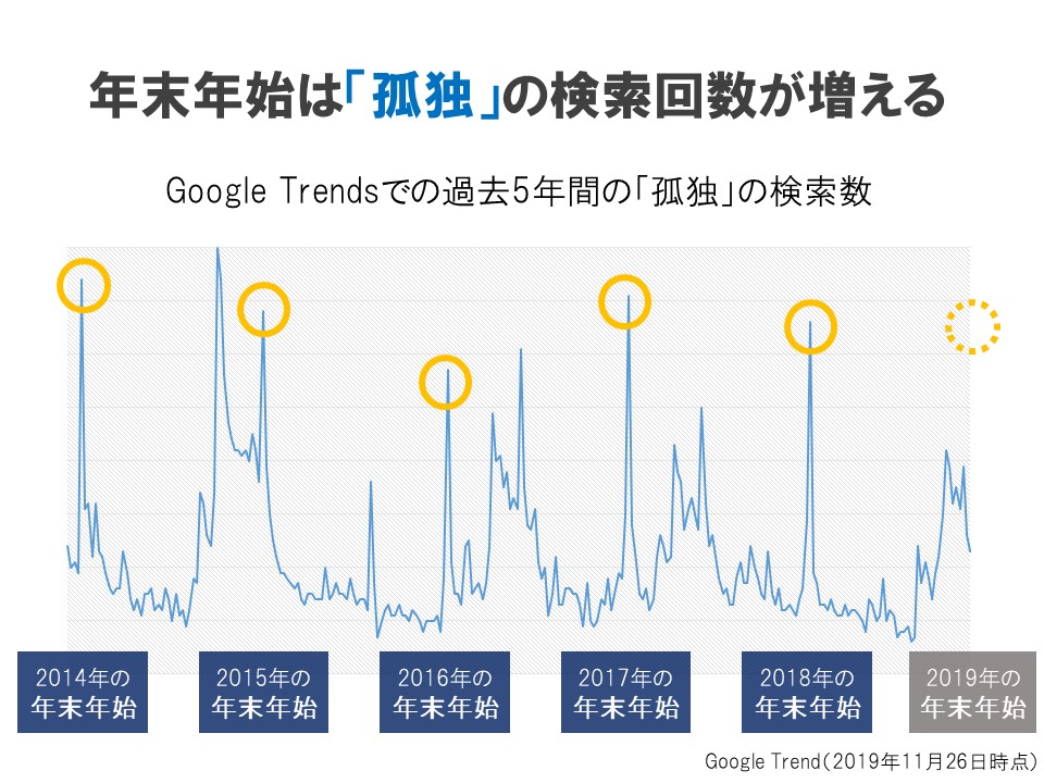 毎年12月末からお正月にかけ、Googleで「孤独」の検索数が急増するというデータもあります。