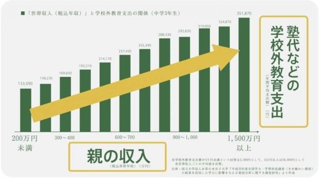 つまり、学校外教育の格差が、学力の格差に紐づいてしまっているという状況です。