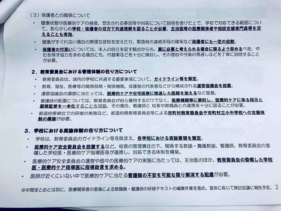 彼は関係各所を走り回り汗をかき、「学校における医療的ケアの実施に関する検討会議」という有識者会議を立ち上げ、親同伴問題を議論の俎上に乗っけたのでした。