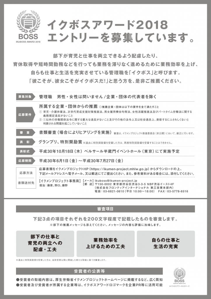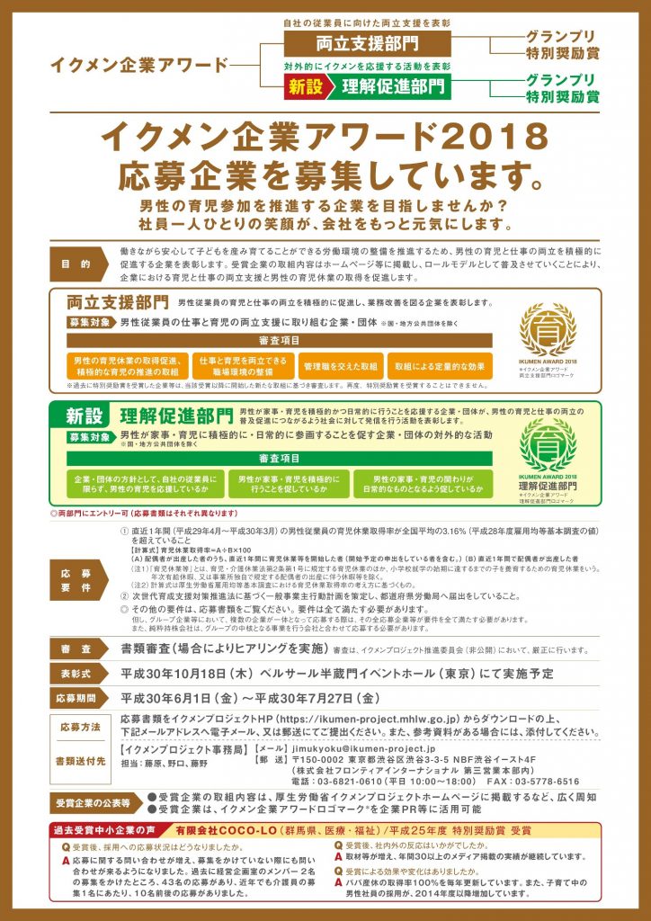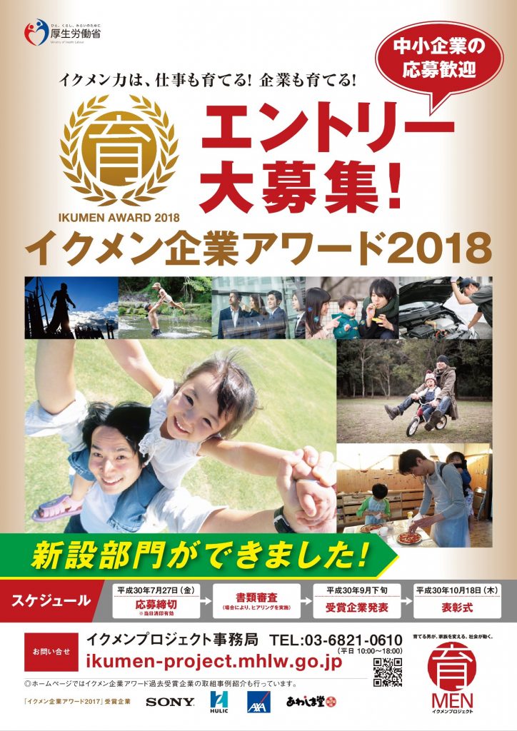 この記事を読んでいる方の中にも、実際にイクメンな方々は大勢いらっしゃるかと思いますが、ぜひその取り組みを「イクメン企業アワード2018」「イクボスアワード2018」「イクメンスピーチ甲子園2018」へぶつけてください。
