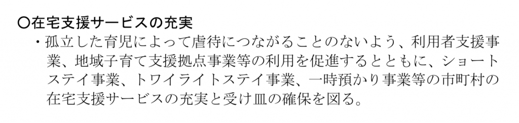 【在宅子育て家庭支援(ショートステイ等)の強化】