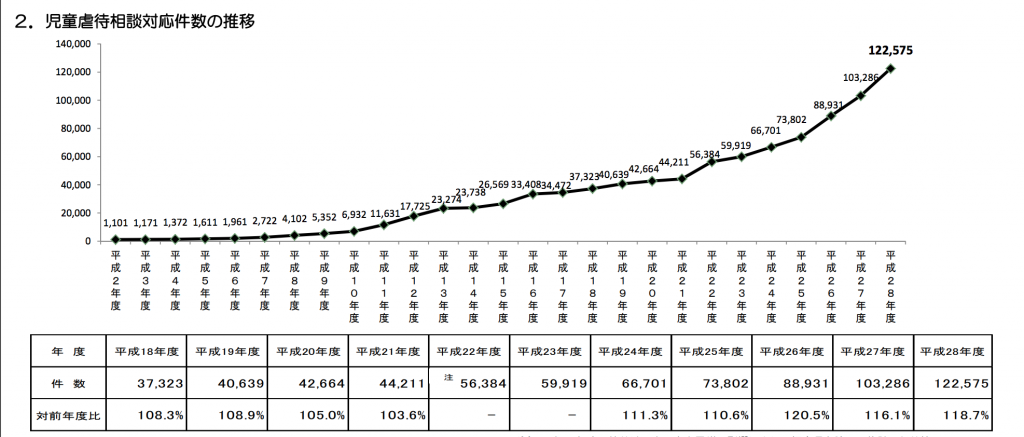 ただ一方で、児童虐待対応件数を見てみましょう。