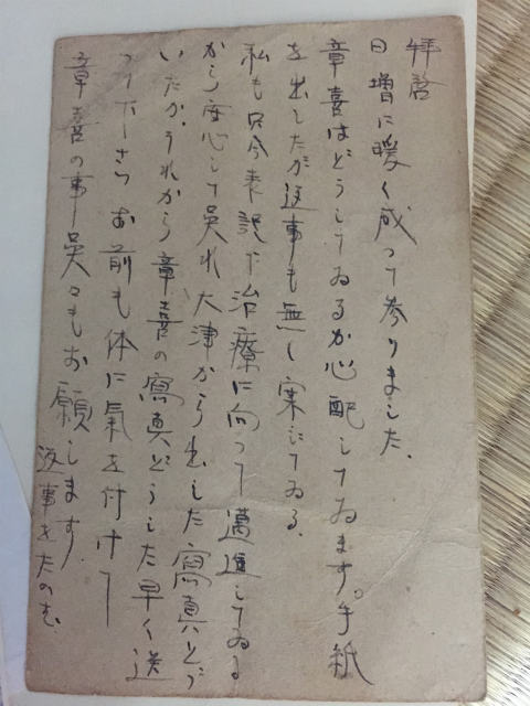 金蔵からの手紙が、実家に何枚か残っている。その手紙のほとんどに、まだ小さな息子(後の僕の父親)を思いやる言葉が並んでいた。