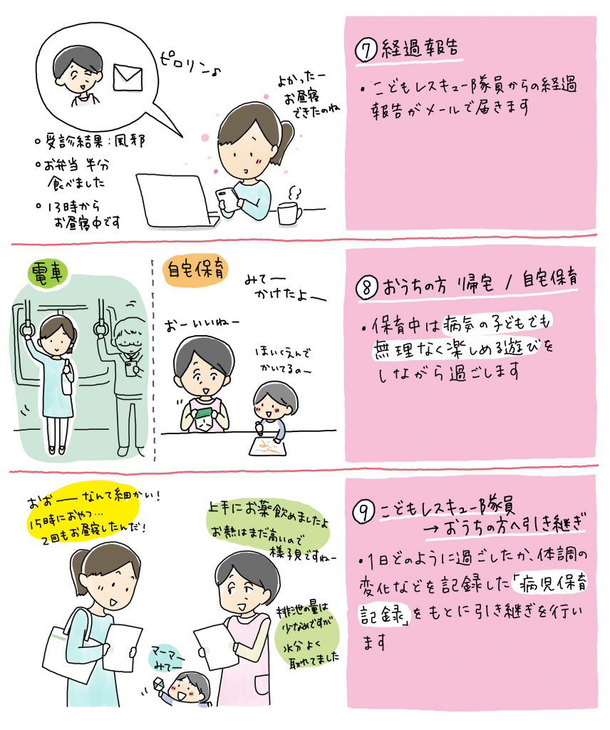 マンガを描いてくれたのは、自らもフローレンスの病児保育利用会員でいらっしゃるイラストレーターのはしもとあやさん(https://twitter.com/aya_hashimt)。