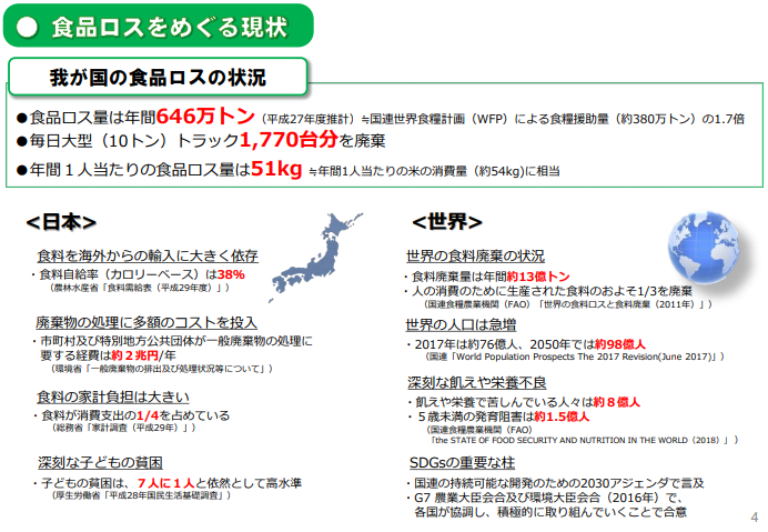 近年世界で関心が高まる「食品ロス」問題