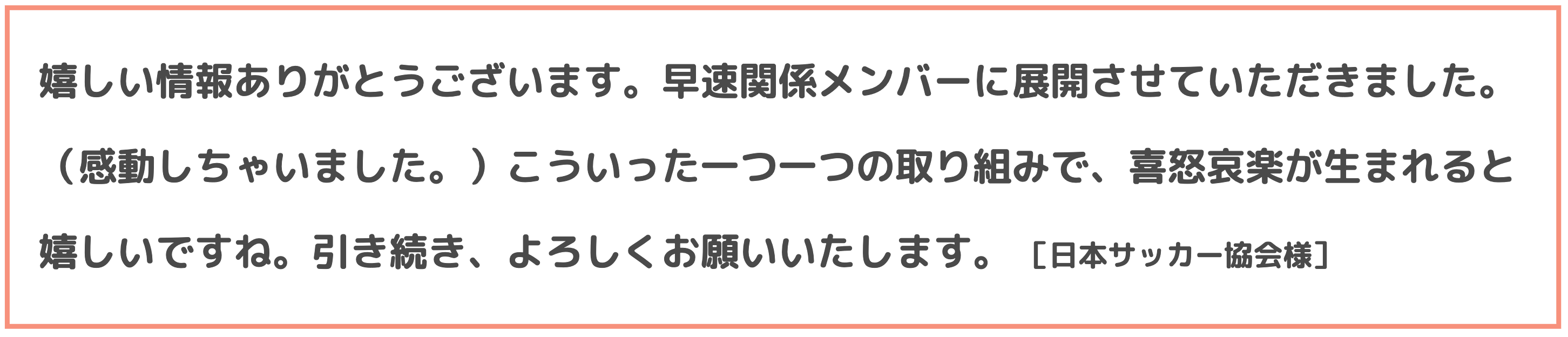 とても嬉しいメッセージでしたので、ご招待頂いた日本サッカー協会様にお伝えすると、このようなお返事が。。