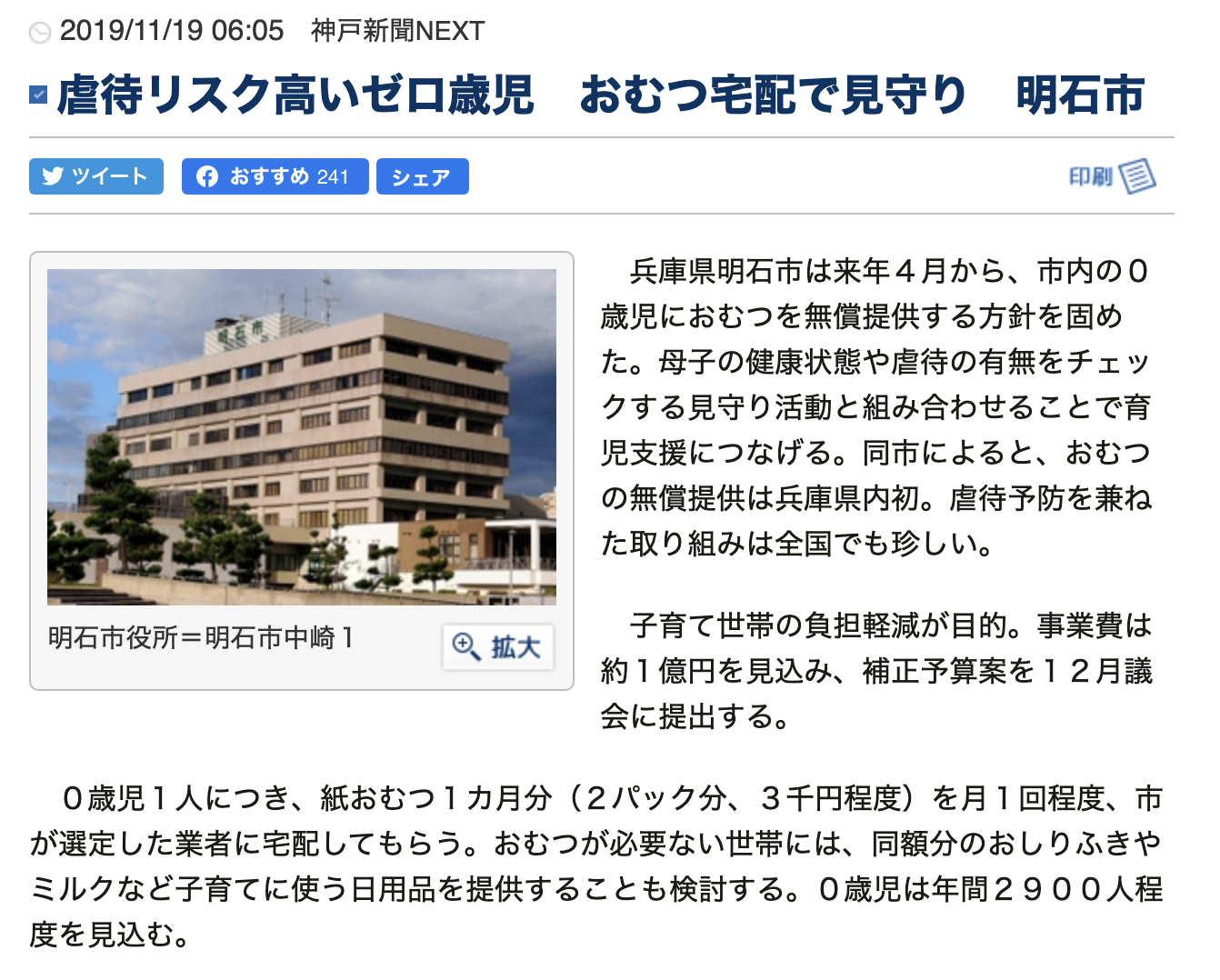 明石市でセンスよく「おむつ宅配」が始まりまったのは、素晴らしいことです。