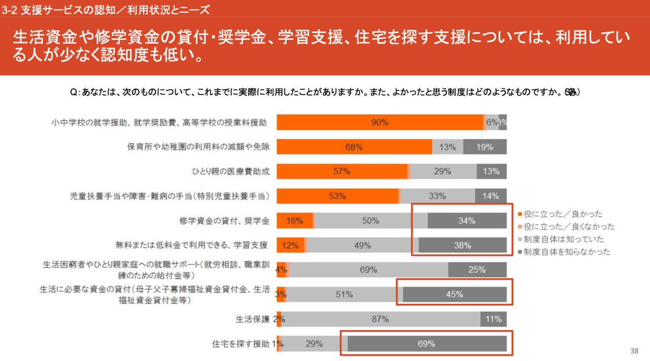 この「こども宅食」支援対象者にアンケートを取ったところ、行政からの支援情報の多くがシンプルに「知られていない」ということが浮かび上がってきました。