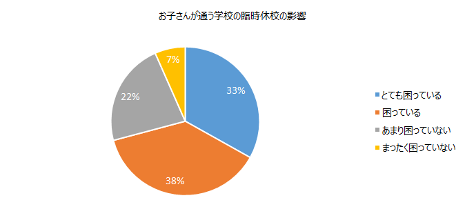 ・休校措置に対して、70.9%・107人の親が「とても困っている/困っている」(n=151)