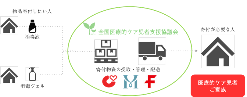 そこで、医ケア協議会であらためて消毒液等の物品を募り、困っている医ケア児者家庭にお送りする、ということをしたいと思います。