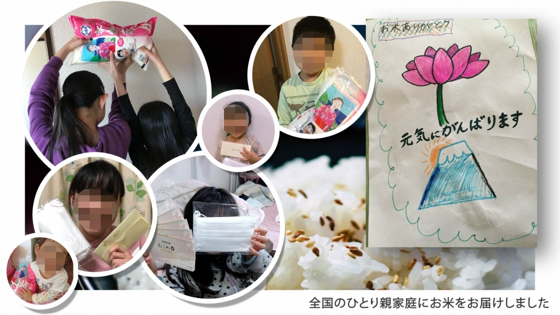 子どもの休校で食費などがかさみ、ひとり親世帯の生活がより一層厳しくなっている現状を受け、児童扶養手当など手当類の支給がない4月に、全国のひとり親家庭901世帯へ、一世帯当たり米5kgないし、おこめ券(2,200円相当)をお届けしました。