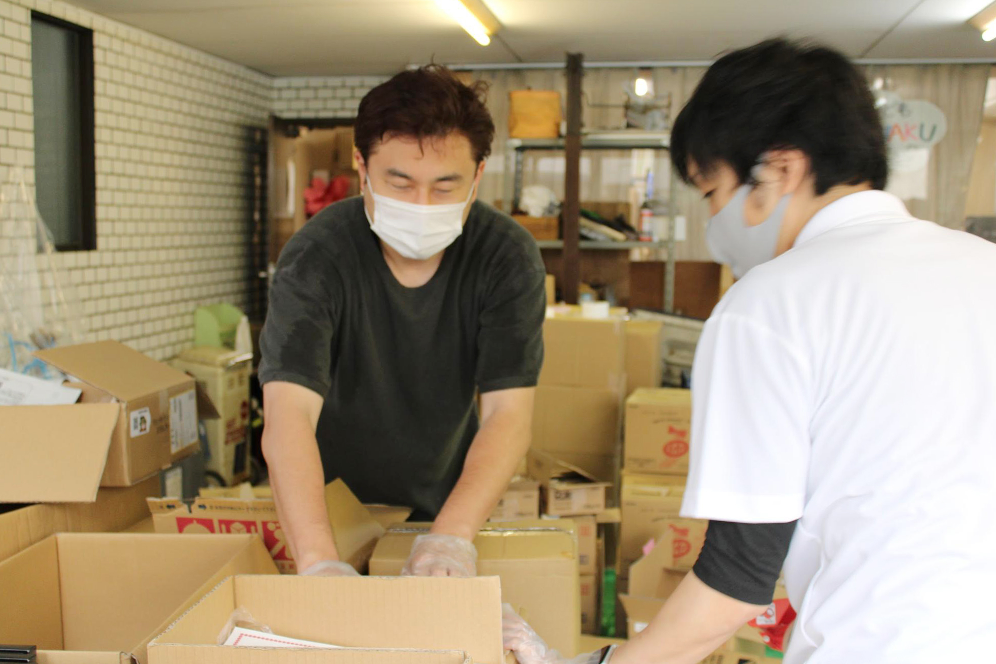 この日の配送準備は40世帯分。今回で2回めの配送となるだけあってスムーズに作業は進み、あっという間、2時間程度で本日分の梱包が終わりました。