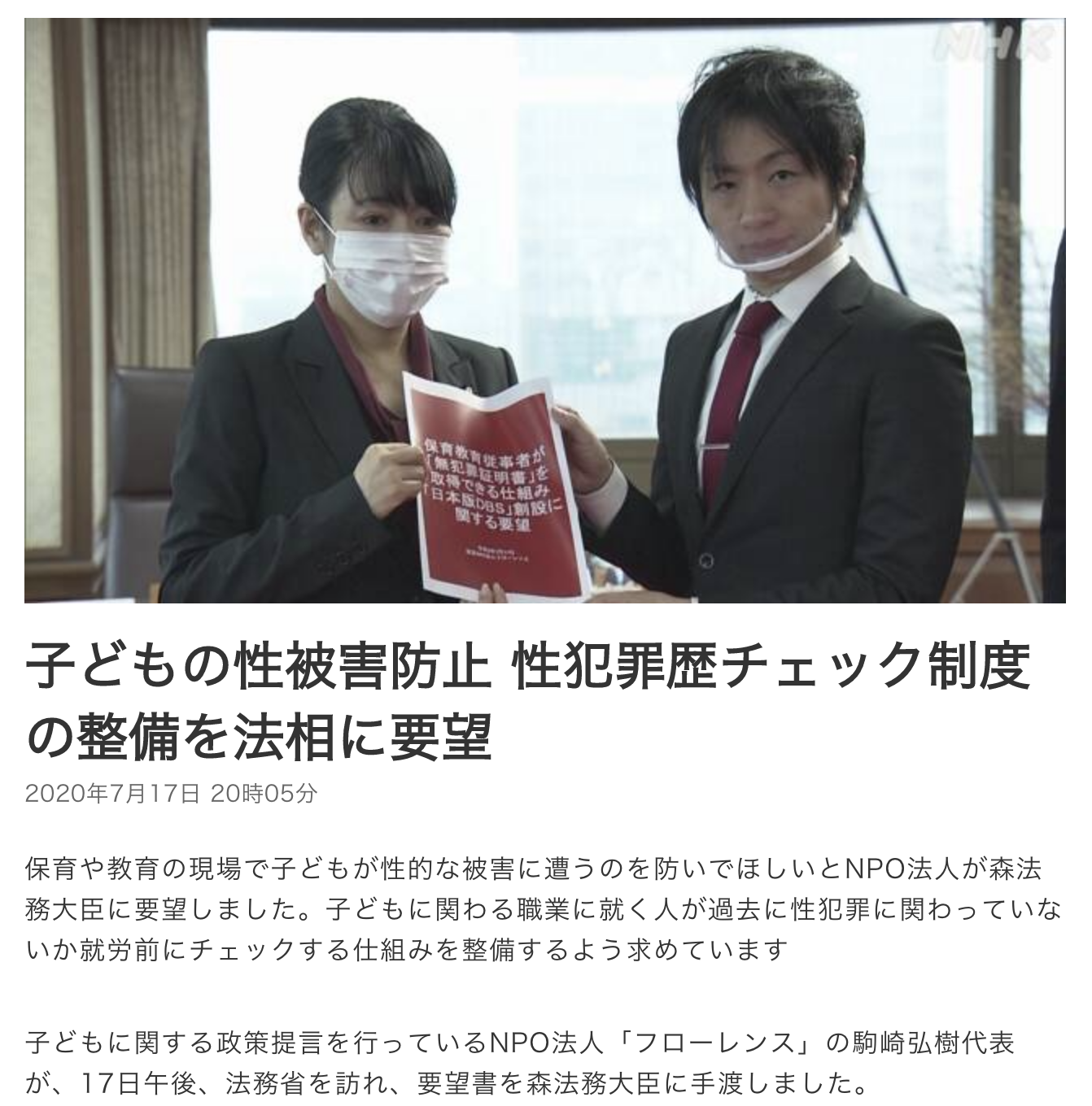 7月14日(火)に、「 #保育教育現場の性犯罪をゼロに」を訴える記者会見をしたことはご報告したばかりなのですが、マッハで森まさこ法務大臣が会ってくださり、直接要望させて頂けました。