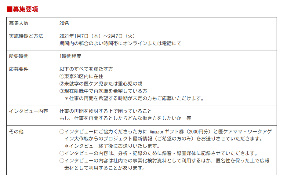 インタビュー調査参加者募集! 「東京23区内居住・再就職したい医療的ケア児ご家族の方」