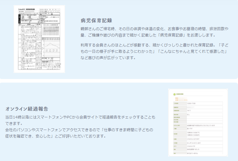 お子さんが病気の時も、コロナ禍の変化にも、親御さんの「困った」を「良かった!」に変えられるよう、厳しい専門研修と感染対策を実施しています。