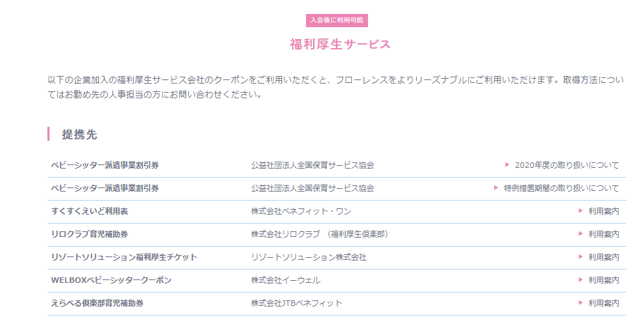 内閣府ベビーシッター派遣事業割引券、勤務先で加入の福利厚生会社のクーポンを利用できます。(※詳細はこちら)