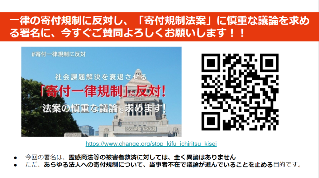 【拡散希望】「寄付規制法案に関する緊急署名活動」に賛同します!