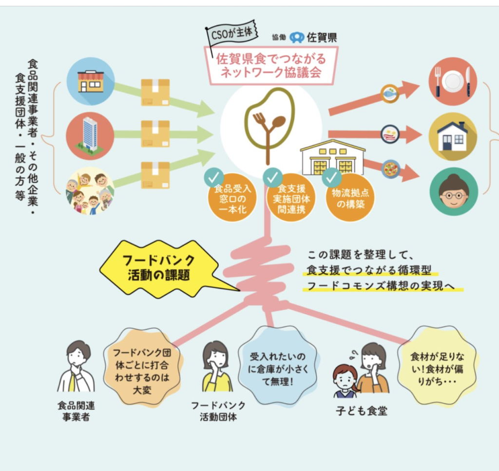 そこで、 「みんなで倉庫を借りて、食材も融通しあったらええやん!」 と、佐賀県の食支援団体さんたち(こども宅食応援団も)は思いました。