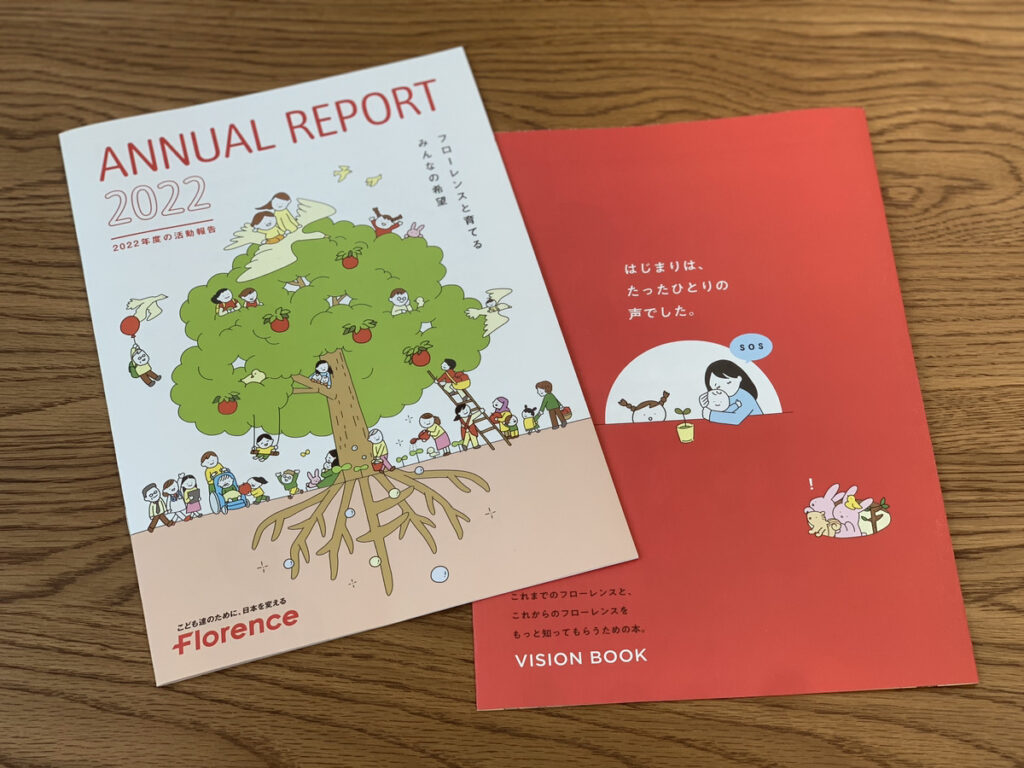 2022年度の活動報告書(アニュアルレポート2022)と、新ビジョン、ミッションについてまとめた「ビジョンブック」を、2022年度寄付でフローレンスを支えてくださった全国の皆さんに郵送でお送りします。