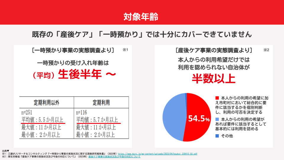 ただでさえ、0歳6ヶ月未満児の保育の受け皿は少なく、現在こども家庭庁が想定している産後ケア事業や一時預かり事業ではカバーできる体制が整っていません。