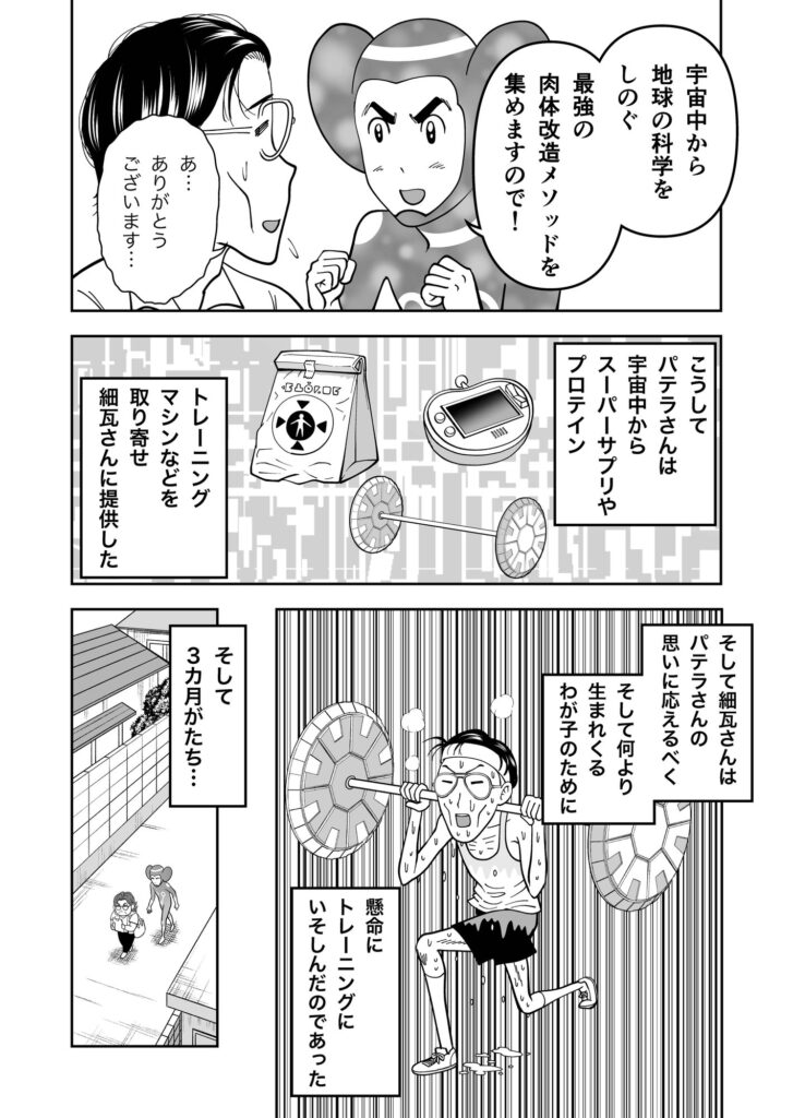 子育てする体力がないと嘆く男性に、パテラさんは肉体改造の話を持ちかける……