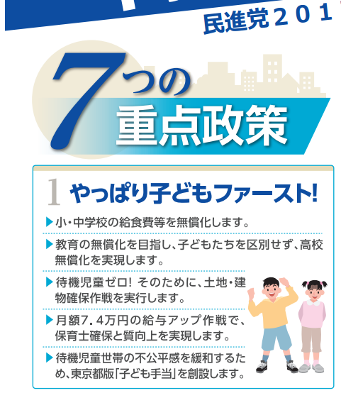 ・都議選において退潮著しい民進党ですが、意外に、といったら失礼ですが、公約については非常に光るものを感じます。