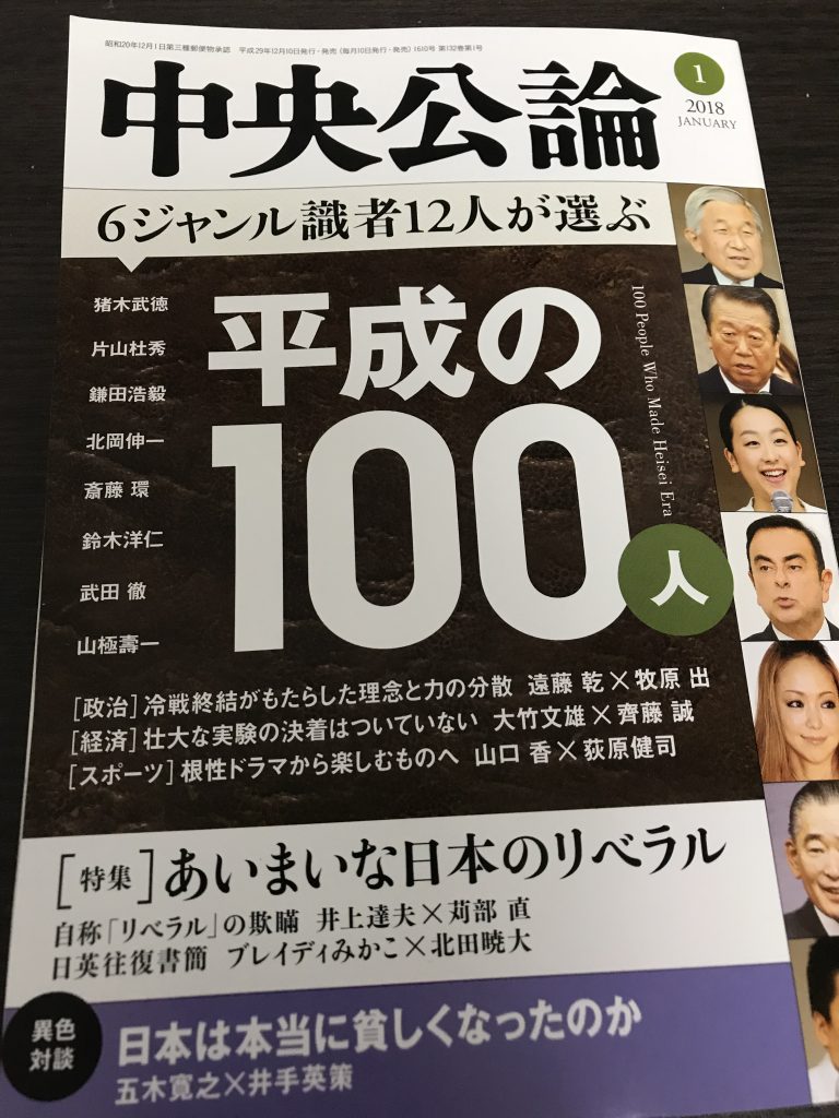 中央公論「平成の100人」に選定頂きました