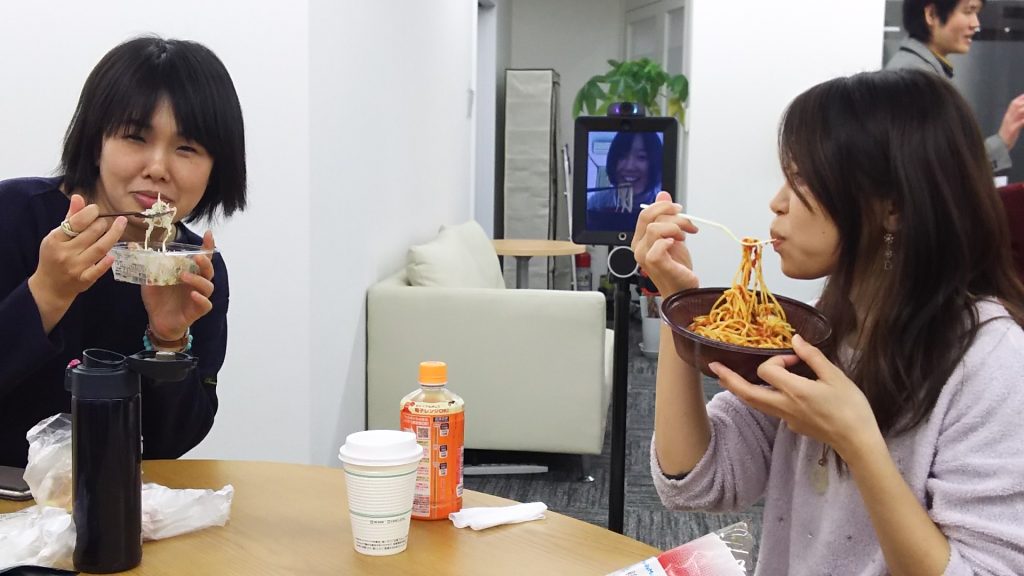 今回、こういった遠隔プレゼンスツールによって、神保町に勤務するスタッフも、遠隔勤務者との心理的な距離を縮めることができました。