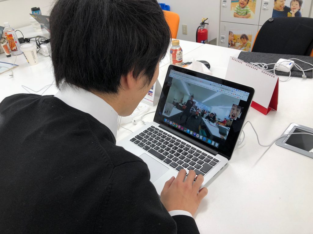 須田側の画面。ランチスペースに沢山のスタッフが集まっているのが分かります。