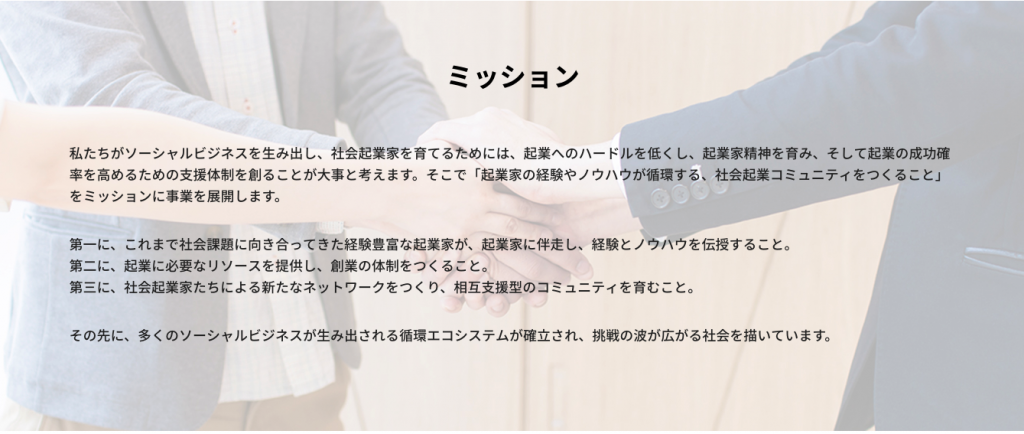SEAが良いな、と思ったのは、社会起業家が社会起業家を支援する、というコンセプトです。