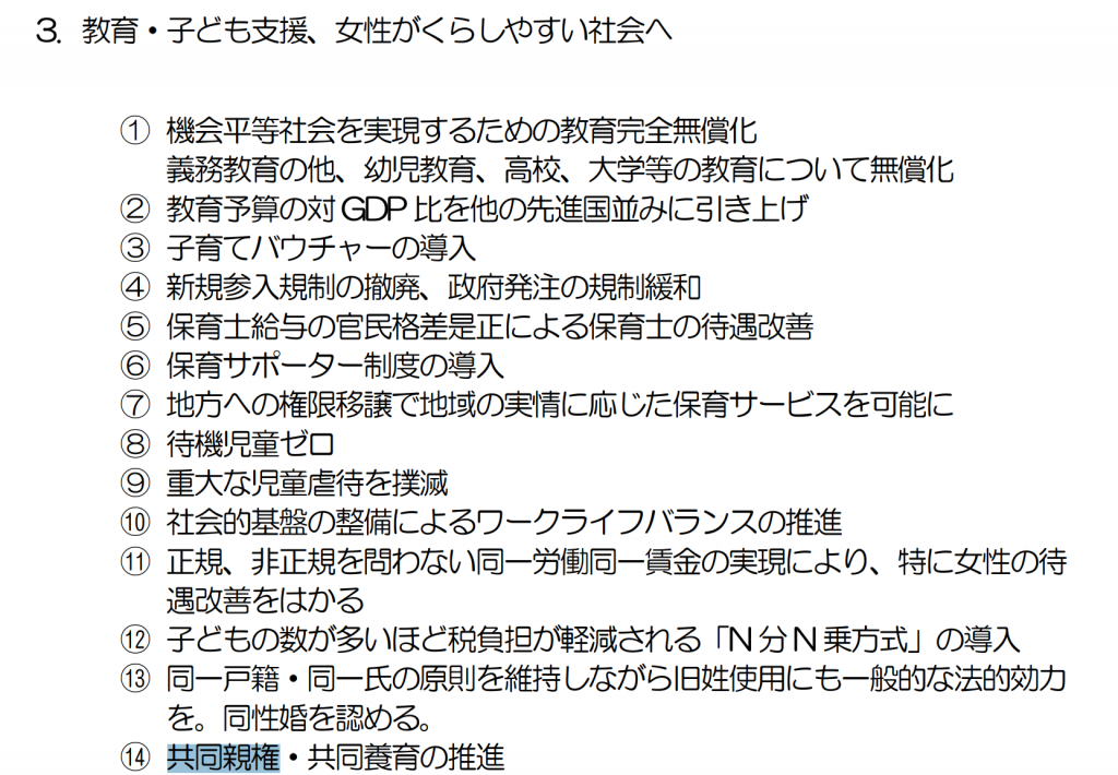 日本維新の会が、離婚後共同親権を参議院議員選挙の公約に掲げています。