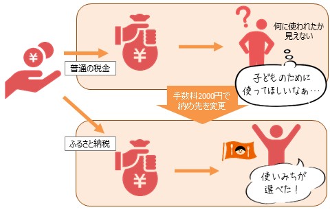 ふるさと納税は「いずれにせよ支払うことになる税金の一部について、自己負担額2,000円で、出身地に関係なく、好きな自治体に納め先を変更できる制度」です。