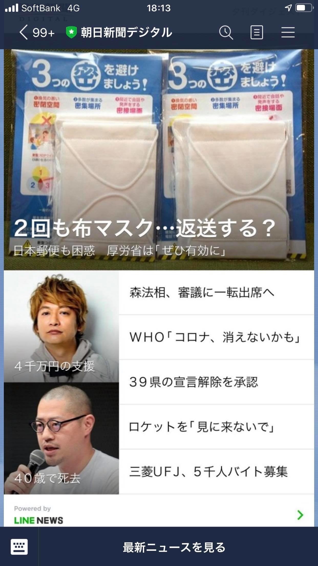 朝日新聞デジタルのLINEにも、「40歳で死去」と彼の顔があった。