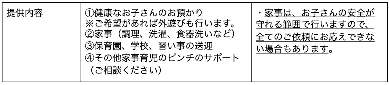 ※家事は、お子さんの安全が守れる範囲で行いますので、全てのご依頼にお応えできない場合もあります。