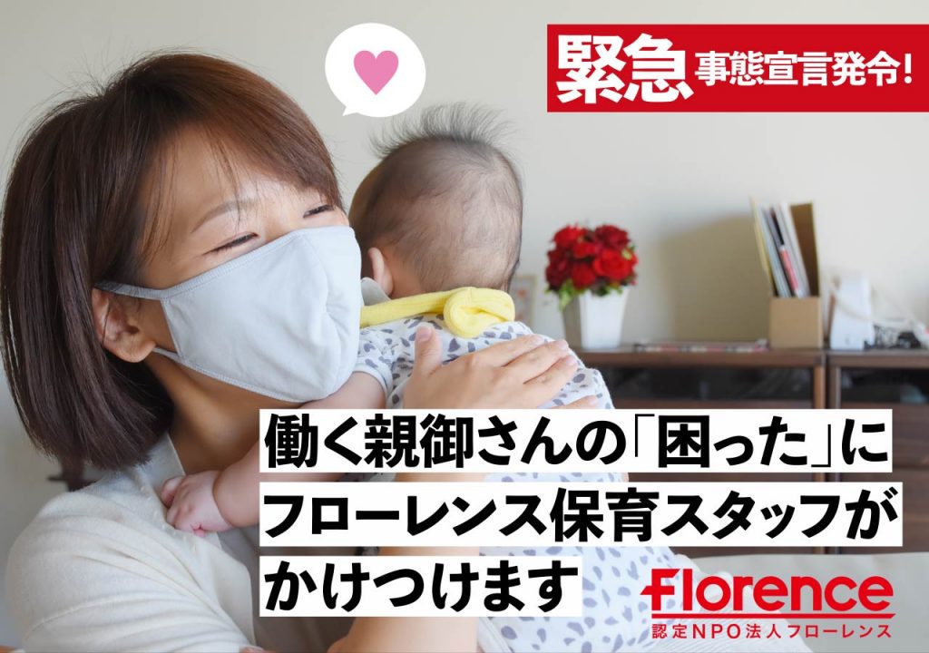 首都圏で訪問型の病児保育サービスを提供し、業界最多80000件の実績をもつフローレンスでは、このたびの緊急事態宣言をうけて、親御さんが「困った!」時に必ずご自宅に保育スタッフがお伺いして、お父さんお母さんのピンチをサポートする保育サービスを昨年から展開しています。