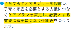 「子育て版ケアマネジャー」はグッドアイデア。介護とか障害福祉の分野ではケアマネって馴染みがありますが、児童福祉分野では聞いたことないですよね?