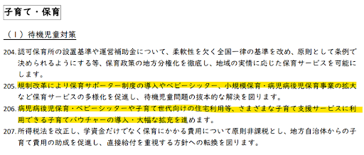 あと、「病児保育の拡充」は良いけど、施設型にこだわり過ぎていませんか?居宅訪問型の病児保育の補助確保をしっかりと行ってほしいです。