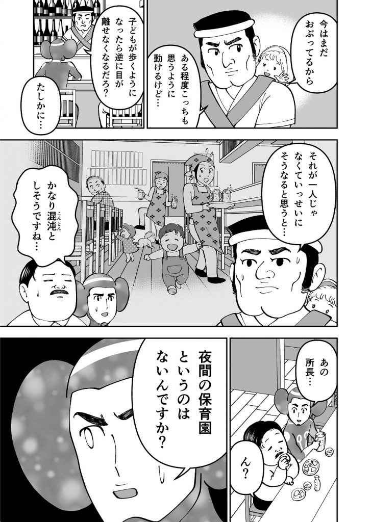 所長と一緒に入った割烹料理店で目にした夜間保育の実態とは…。