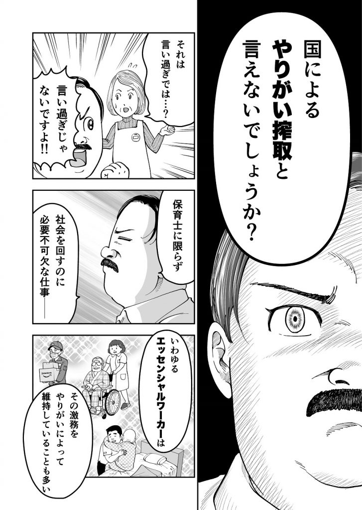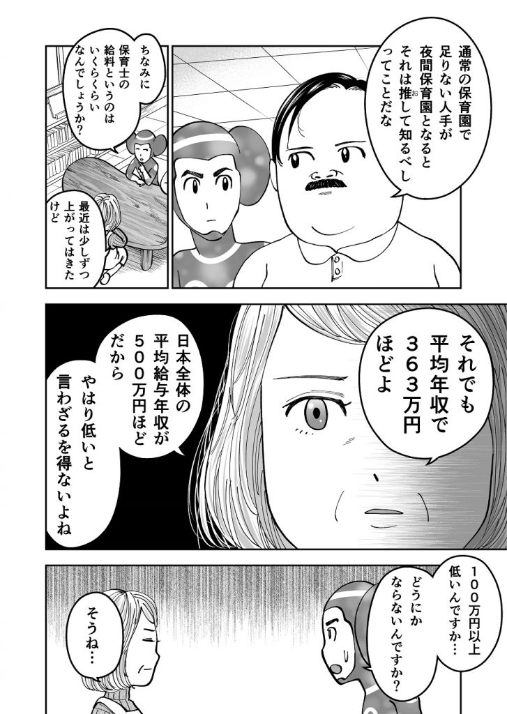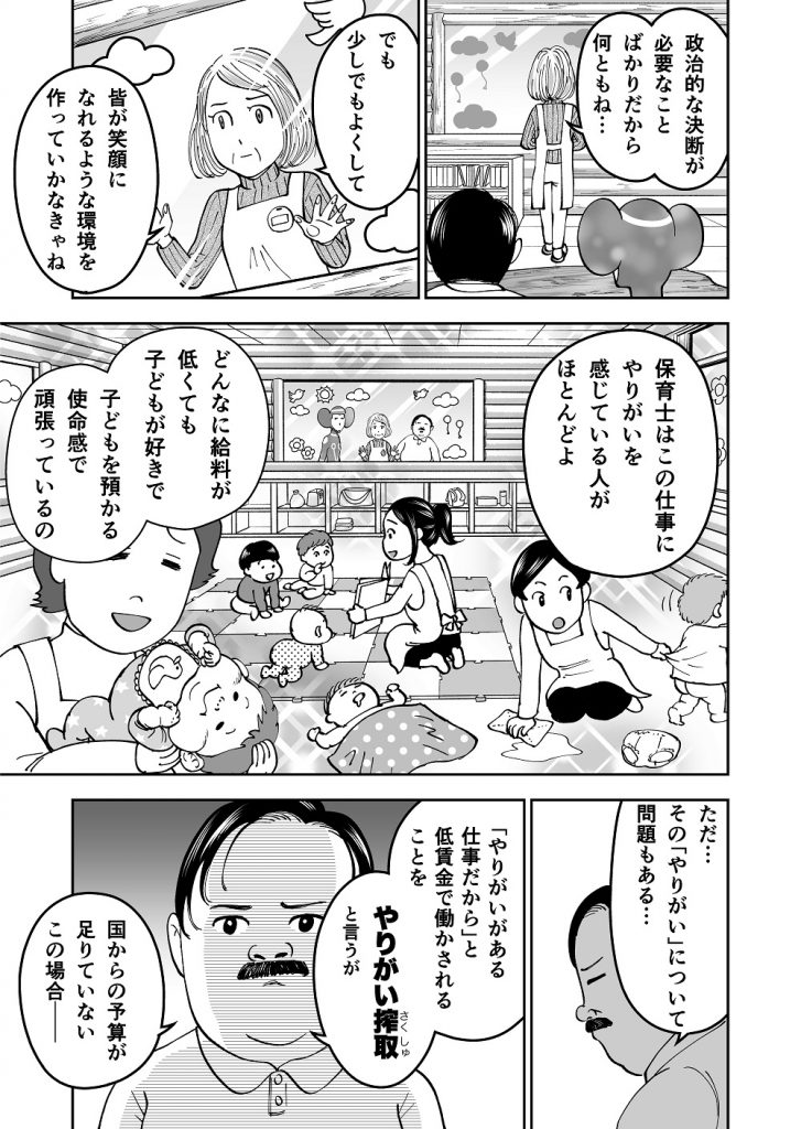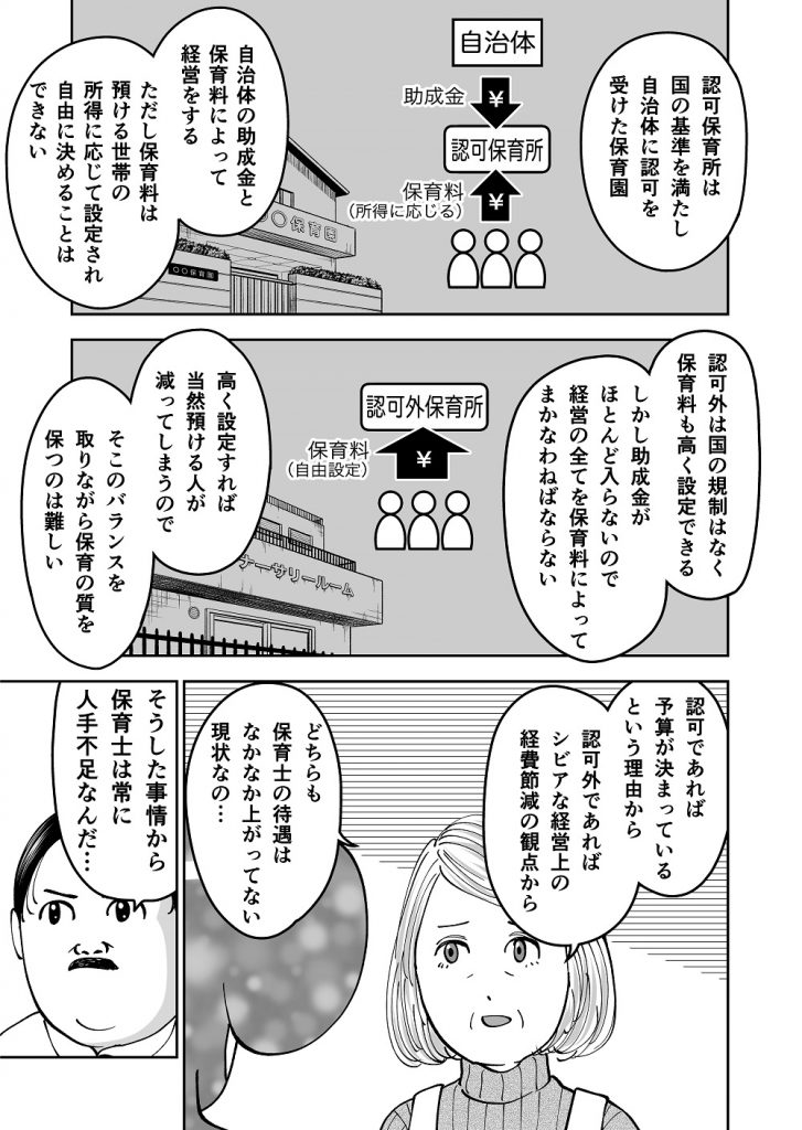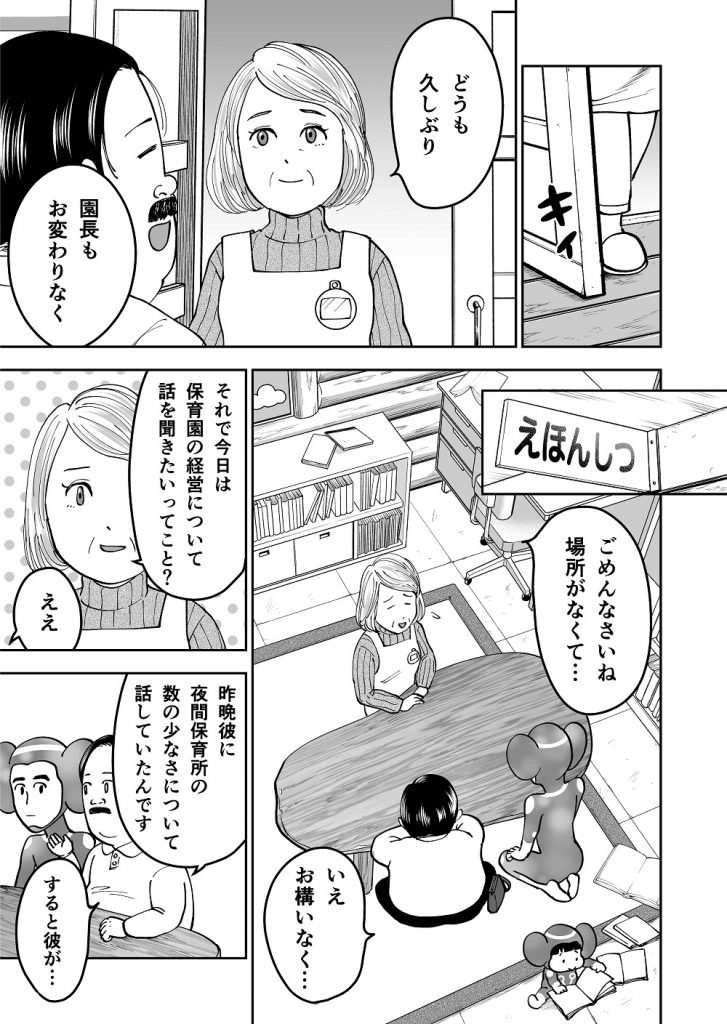 保育園の実態を学ぶため、園長の話を聞くことに。
