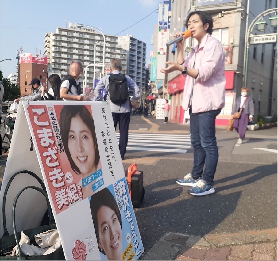 妻のこまざき美紀は、政党に所属していません。政党から推薦を受けたり所属していたりすると、人もお金も出してもらえるのですが、妻は完全無所属のため、人もお金も全然足りない状況です。