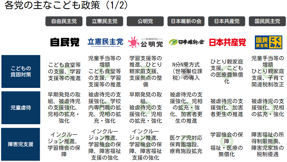 特に、児童虐待や障害児支援、日本版DBS法に関しては、他党と比較しても政策に厚みがあり、具体的な内容が書かれている印象です!