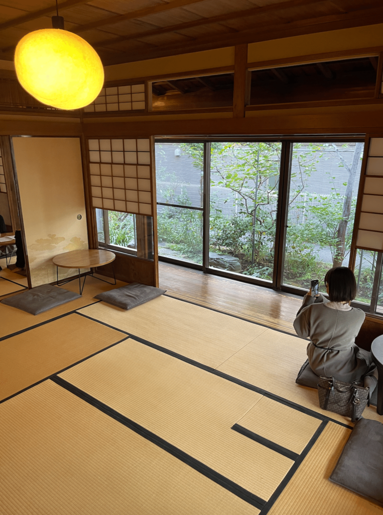 ☝️店内は畳に座りながら庭の緑を見れます