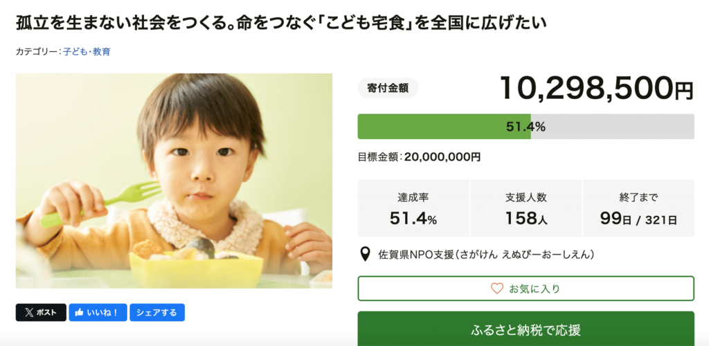 継続的には難しいけど、単発なら、という方がいたら、「こども宅食」ふるさと納税キャンペーン。