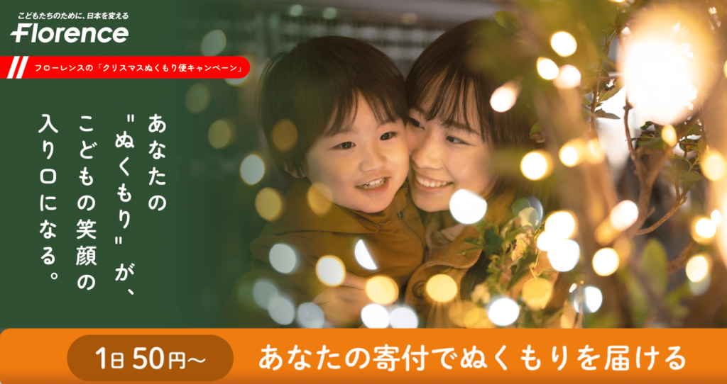 1日50円からできる、継続的にフローレンスを支えるマンスリーサポーターを募集するキャンペーン。