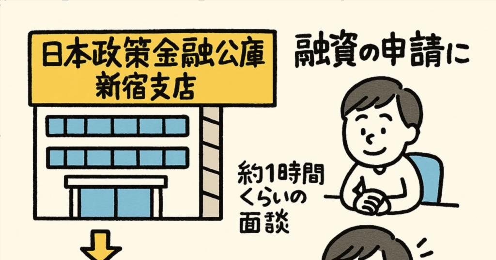 日本政策金融公庫新宿支店に融資の申請に。1時間くらいの面談。