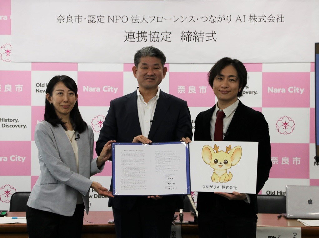 つながりAI株式会社(東京都新宿区・代表取締役:駒崎弘樹)は、奈良市(市長:仲川げん)、認定NPO法人フローレンス(東京都千代田区・代表理事:赤坂緑)の三者で協働し、生成AIと専門的なソーシャルワーカーによる「AIと専門家のハイブリッド子育て相談」の実証実験を開始いたします。