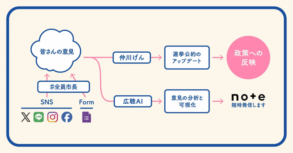 SNSやオンラインフォームなどのデジタルツールを通じて、市民の声を集め、意思決定のプロセスに組み込む。その姿勢は、台湾でオードリー・タンが推進したvTaiwanプロジェクトのローカル版のよう。